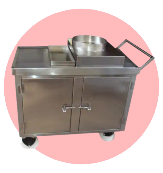 Jyoti Equipments offers the Masala Trolley, designed to store and organize a variety of spices for efficient cooking operations. Ideal for professional kitchens, hotels, and catering businesses, this trolley ensures quick access to spices while maintaining freshness. Crafted from high-quality stainless steel, it features multiple compartments and easy-glide wheels for smooth mobility. Its ergonomic design makes it easy to clean and resistant to corrosion, ensuring long-lasting performance.